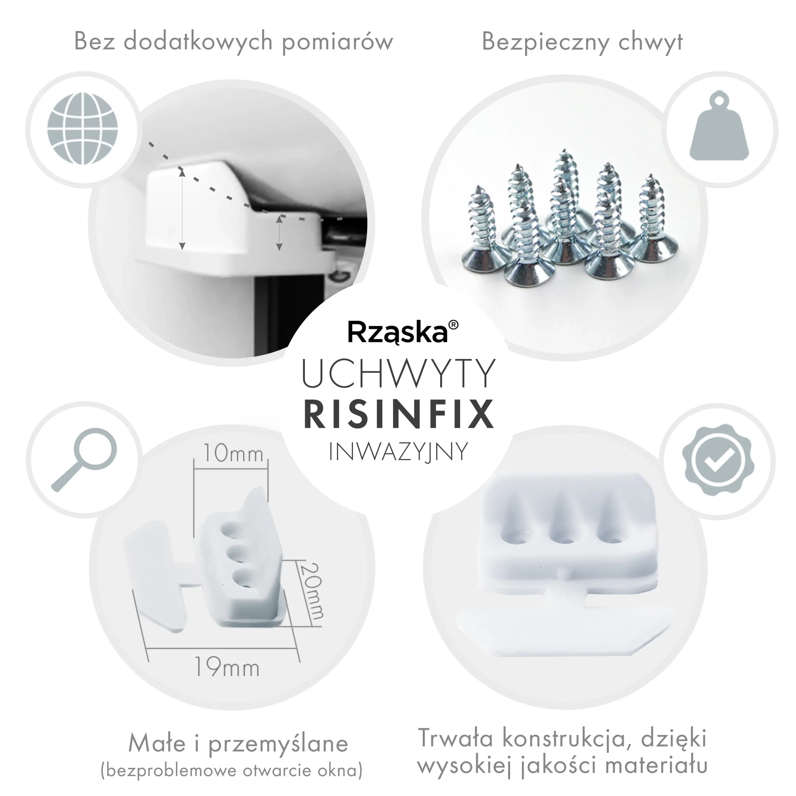Roleta plisowana w systemie bezinwazyjnym montowana jest za pomocą uchwytów zaciskowych do ramy okna. Dzięki takiemu rozwiązaniu mamy możliwość umiejscowienia plisy na ramie okiennej, eliminując prześwit pomiędzy plisa, a ramą okna.