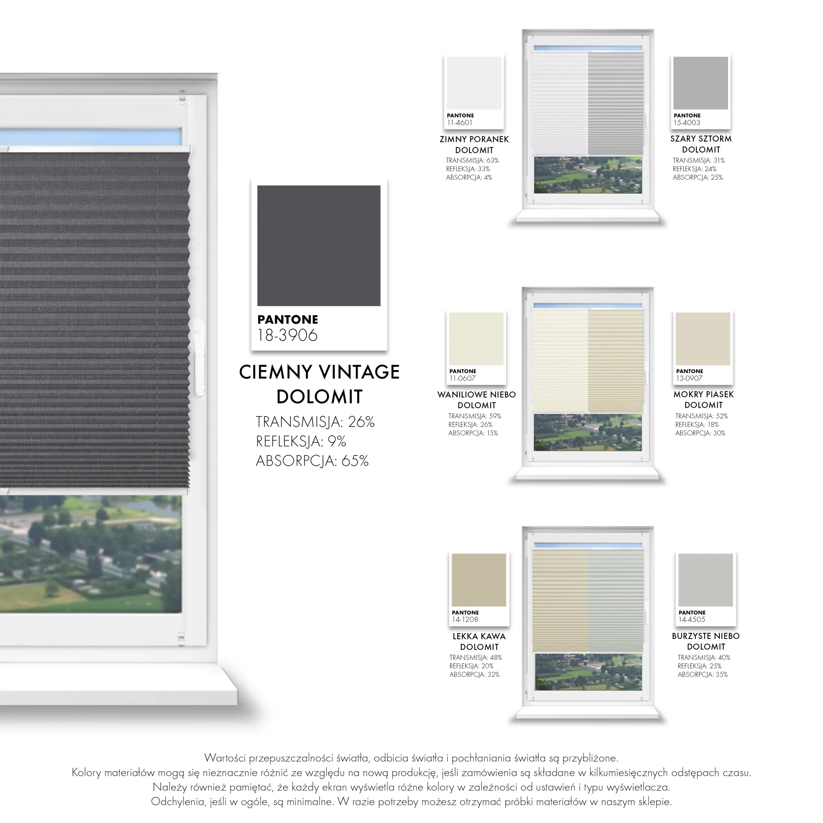 Kolekcja Dolomite, zarówno jak i wszystkie powyższe tkaniny plisowane są stabilizowane UV, aby zapobiec szybkiemu blaknięciu kolorów tkaniny. Dzięki zamontowaniu rolety na oknie dachowym, zapewni ona ochronę przed promieniowaniem UV, wyeliminuje promienie słoneczne ograniczając ilość wpadającego światła do pomieszczenia.