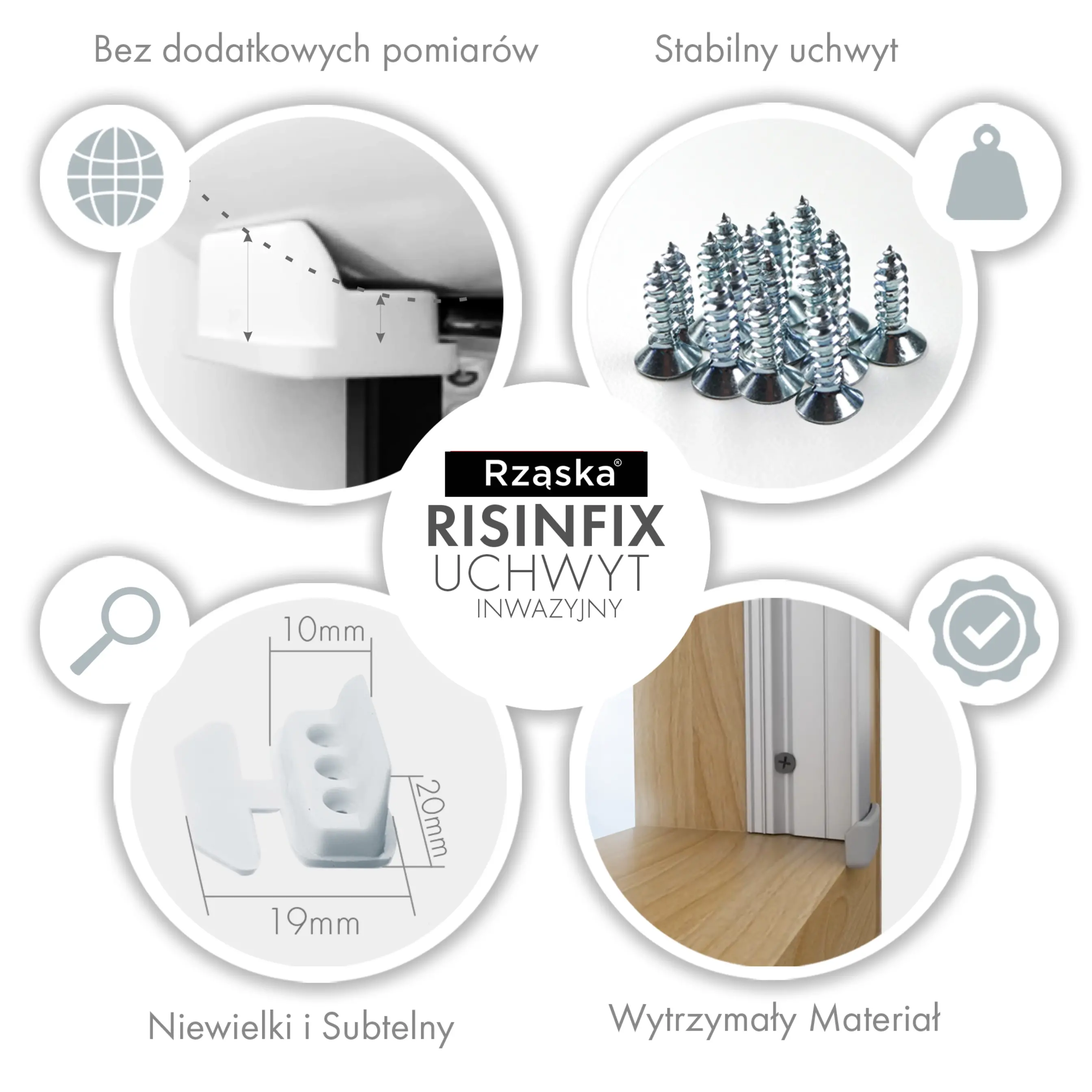 Rolety dachowe plisowane Rząska® montowane są systemie inwazyjnym, dzięki temu plisy umiejscowione są w świetle szyby. Mocuje się je do listwy przyszybowej za pomocą 4 mocowań inwazyjnych do przykręcenia, po dwa na górze i na dole listw przyszybowych.