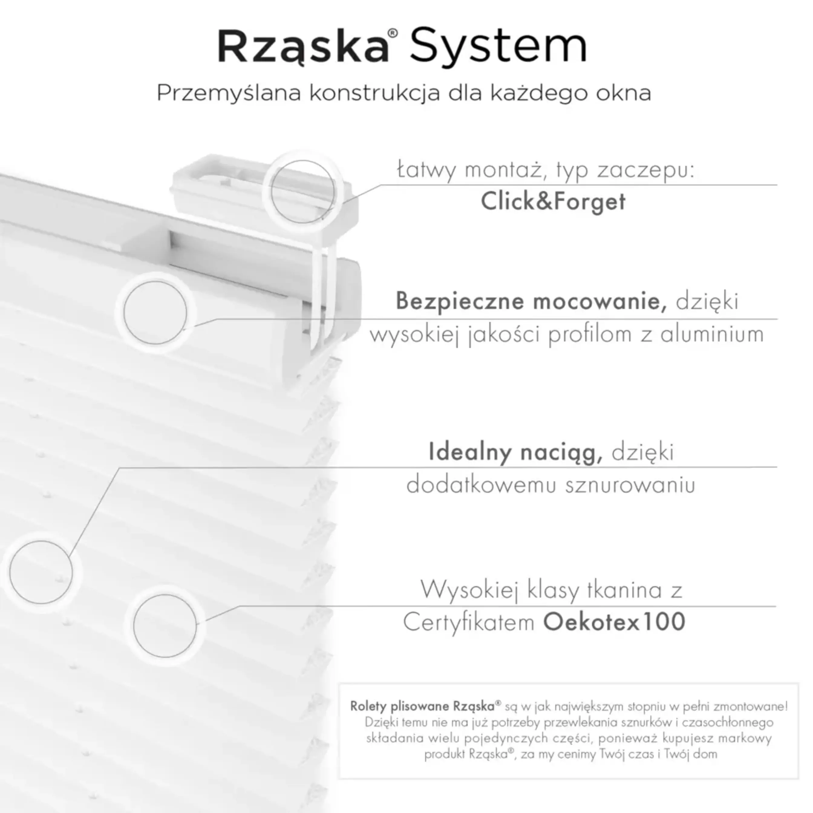 Rolety plisowane na wymiar Rząska® dostępne w różnorodnej gamie kolorystyki materiałów i mechanizmach, oferują nie tylko maksymalne zaciemnienie, ale także estetyczny wygląd i funkcjonalność.