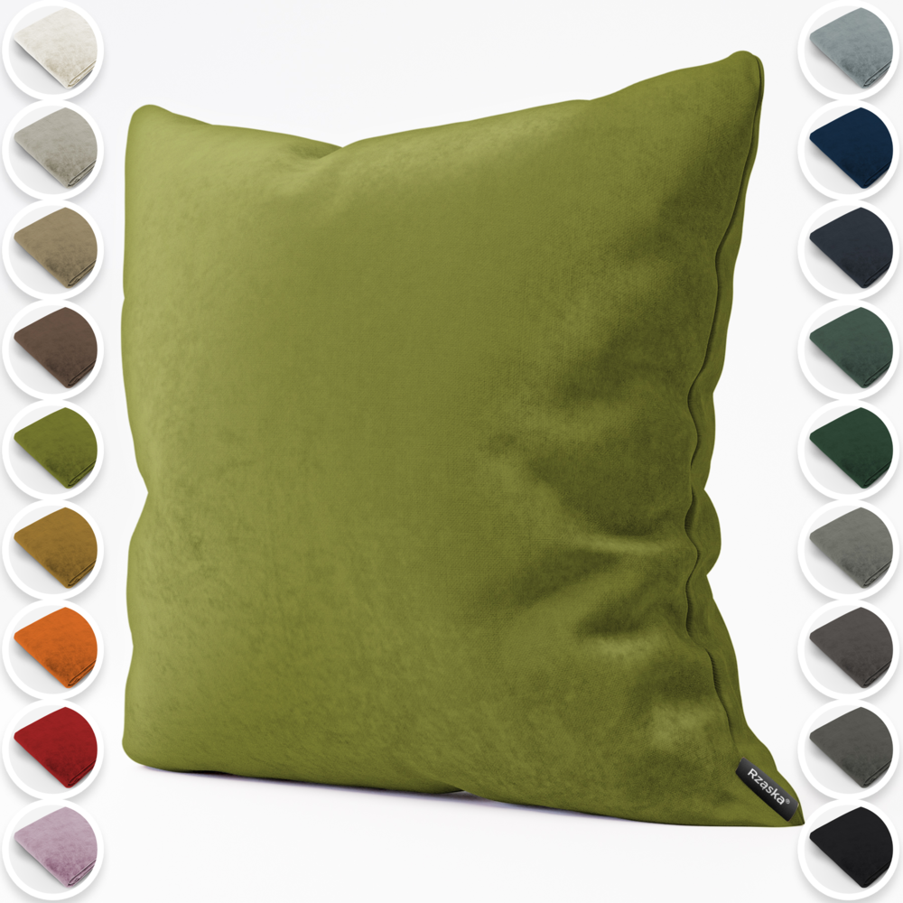 Dekoracyjne poszewki na poduszki Rząska® w rozmiarze 40x40 cm, przytulne i miękkie z kolekcji Millenium Velvet w kolorze Olives Garden, zielonym.