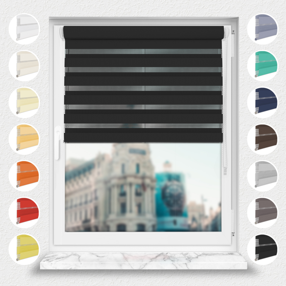 - Funkcja dzień noc: W roletach dzień i noc dwie warstwy tkaniny, każda z nieprzezroczystymi i przezroczystymi pasami, zapewniają częściowy widok na zewnątrz lub zaciemniają pomieszczenie i zapewniają prywatność. Dzięki tym roletom można łatwo regulować ilość światła i stopień prywatności dzięki naprzemiennym przezroczystym i nieprzezroczystym paskom. Nasze rolety Dzień i Noc są dostępne w 14 modnych kolorach.