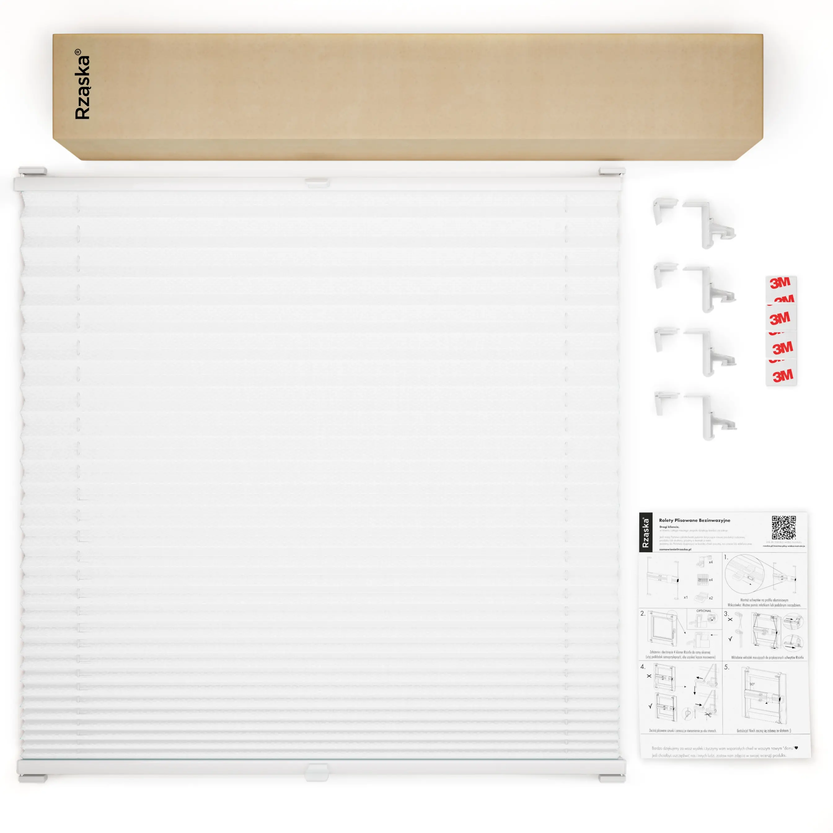 Do każdej plisy bezinwazyjnej dołączamy wszystkie niezbędne do montażu elementy, dzięki którym w łatwy sposób będziesz mógł zamontować plisy do ramy okna.