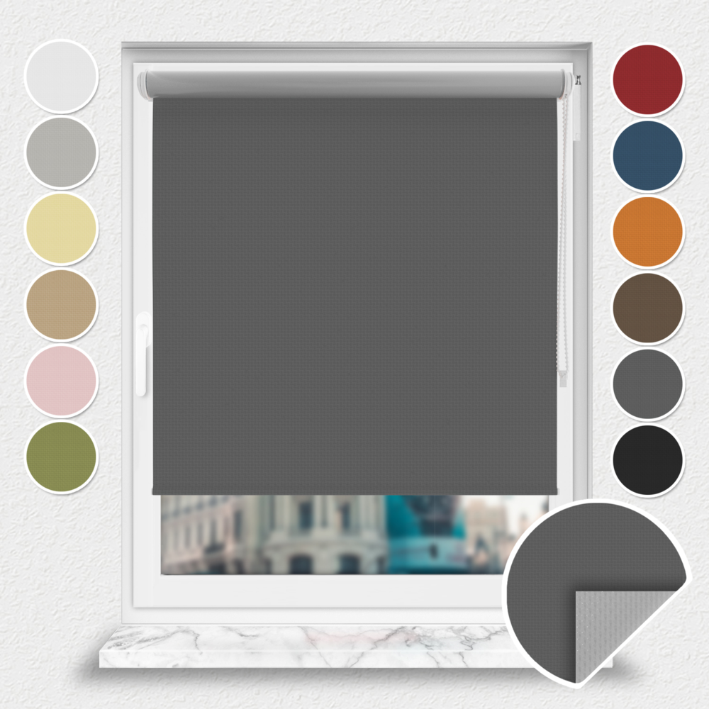 • Funkcja Thermo: Nasza wysokiej jakości tkanina zaciemniająca Thermo Blackout ma specjalną powłokę srebra od strony okna która chroni przed ciepłem, dzięki czemu roleta odbija bardzo dużo światła słonecznego na zewnątrz. Thermo Blackout jest dostępny w 12 modnych kolorach i jest właściwym wyborem, jeśli pomieszczenie musi być zaciemnione w jak największym stopniu.
