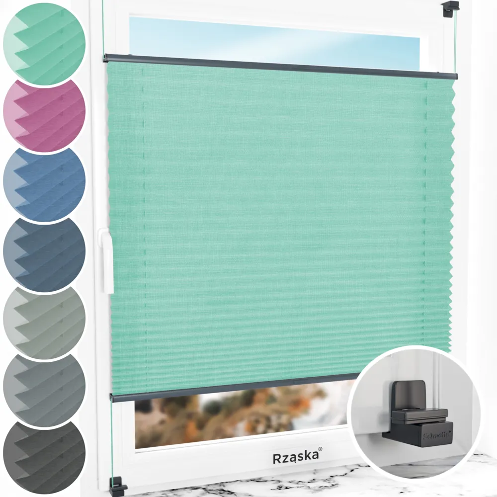- Montaż: uchwyt do plisy Rząska® Risinfix do zaciskania: gwarantuje wytrzymałość i elastyczność. Praktycznie niewidoczny i pasujący do każdego koloru okna, mały i dobrze przemyślany (nieszkodliwy dla gumowych uszczelek i najlepiej zapobiegający przeciągom i syczeniu powietrza). Zapewnia łatwy i szybki montaż poniżej 3 minut bez użycia dodatkowych narzędzi. Uchwyt posiada solidny i antypoślizgowy chwyt, a dodatkowe podkładki samoprzylepne zapewniają stabilność.