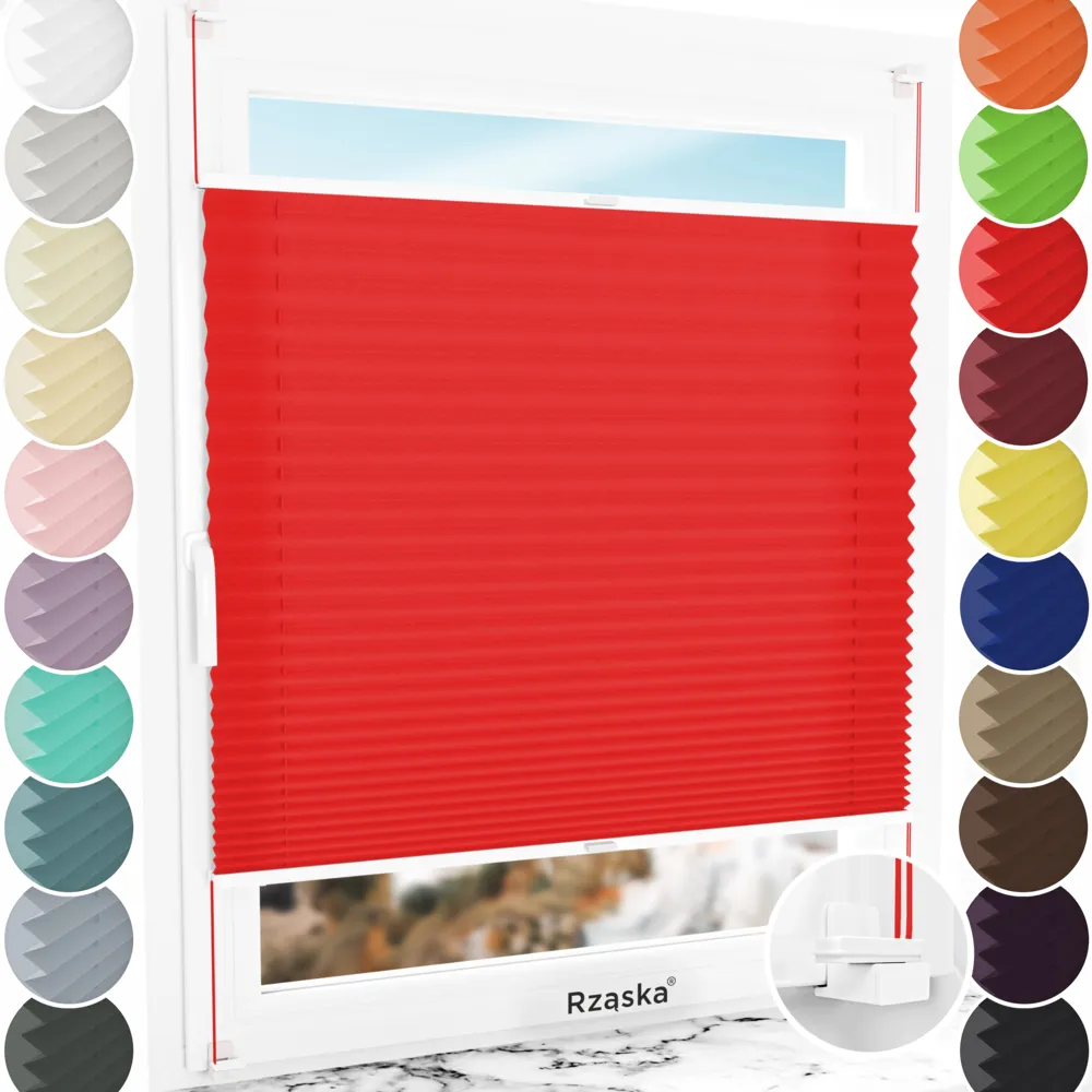 Rząska® bezinwazyjne plisy do okien na wymiar • mocowania Risinfix do zaciskania • kolekcja Premium: kolor tkaniny Usta Geishy, czerwony • kolor profili biały