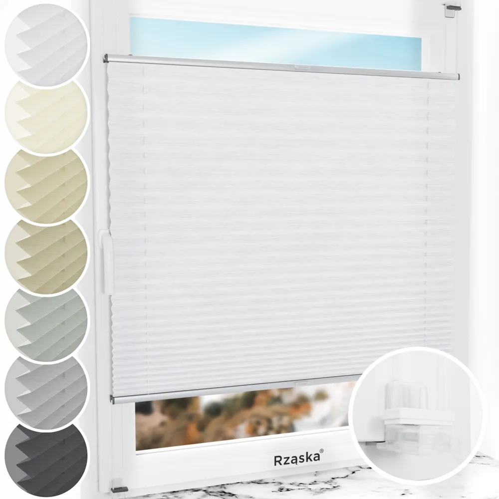 - NOWOŚĆ! Mocowania Rząska® Risinfix do zaciskania: Regulacja montażowa na skrzydle okiennym w zakresie od 9 do 24 mm. Uniwersalne – pasują do wszystkich rodzajów okien. Mocniejsze, mniejsze, bardziej dyskretne i kompatybilne ze wszystkimi plisami Rząska®! Przezroczyste, praktycznie niewidoczne, a przy tym kompaktowe i przemyślane (delikatne dla uszczelek oraz maksymalnie ograniczające przeciągi i „syczenie” powietrza). Montaż w mniej niż 3 minuty, bez wiercenia i bez użycia narzędzi (wszystko w zestawie).