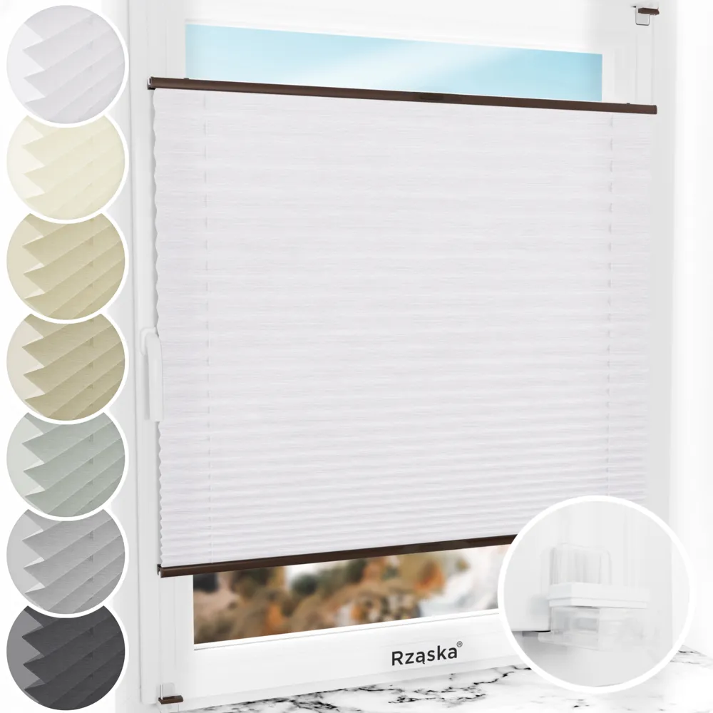 - NOWOŚĆ! Mocowania Rząska® Risinfix do zaciskania: Regulacja montażowa na skrzydle okiennym w zakresie od 9 do 24 mm. Uniwersalne – pasują do wszystkich rodzajów okien. Mocniejsze, mniejsze, bardziej dyskretne i kompatybilne ze wszystkimi plisami Rząska®! Przezroczyste, praktycznie niewidoczne, a przy tym kompaktowe i przemyślane (delikatne dla uszczelek oraz maksymalnie ograniczające przeciągi i „syczenie” powietrza). Montaż w mniej niż 3 minuty, bez wiercenia i bez użycia narzędzi (wszystko w zestawie).