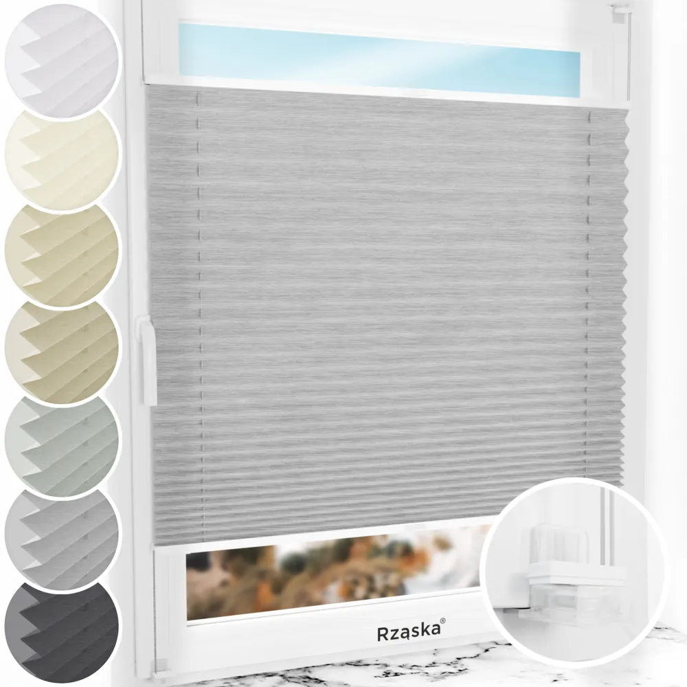 - NOWOŚĆ! Mocowania Rząska® Risinfix do zaciskania: Regulacja montażowa na skrzydle okiennym w zakresie od 9 do 24 mm. Uniwersalne – pasują do wszystkich rodzajów okien. Mocniejsze, mniejsze, bardziej dyskretne i kompatybilne ze wszystkimi plisami Rząska®! Przezroczyste, praktycznie niewidoczne, a przy tym kompaktowe i przemyślane (delikatne dla uszczelek oraz maksymalnie ograniczające przeciągi i „syczenie” powietrza). Montaż w mniej niż 3 minuty, bez wiercenia i bez użycia narzędzi (wszystko w zestawie).