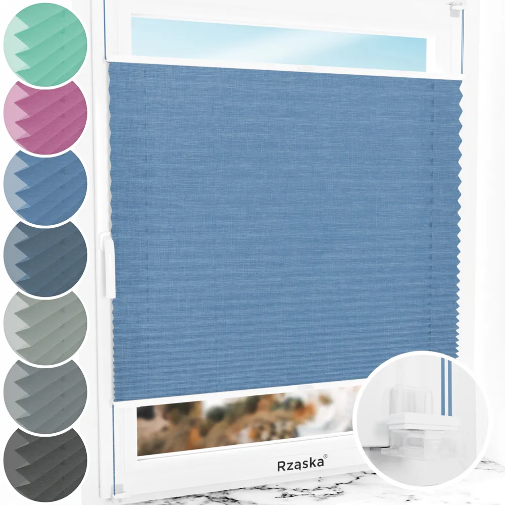 Rząska® bezinwazyjne plisy okienne na wymiar • mocowania Risinfix do zaciskania • kolekcja Melange: kolor tkaniny Głębokie morze, niebieski • kolor profili biały