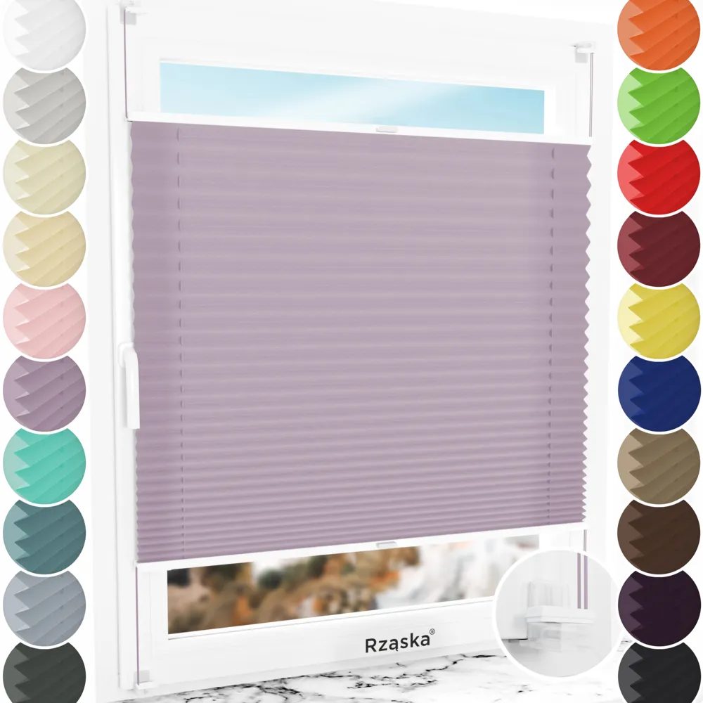 Rząska® bezinwazyjne plisy okienne na wymiar • mocowania Risinfix do zaciskania • kolekcja Premium: kolor tkaniny Śliwkowy urok, flioletowy • kolor profili biały