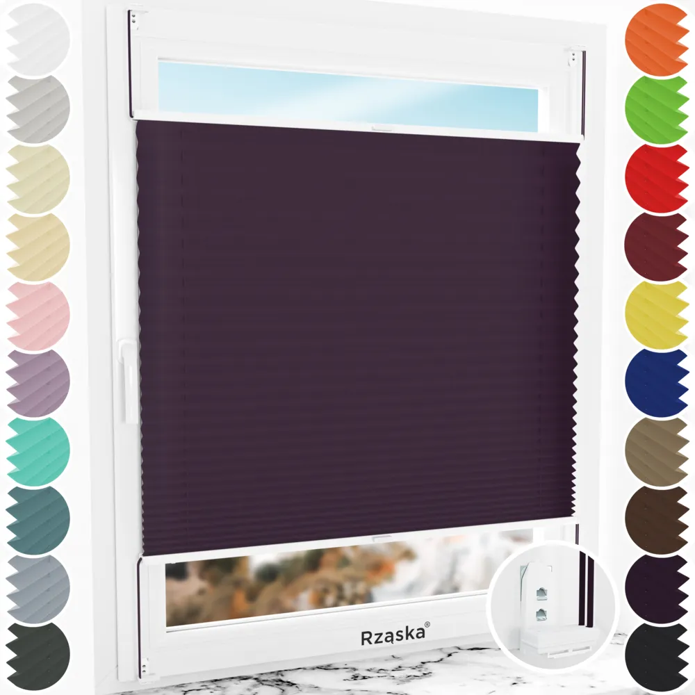 Rząska® bezinwazyjne plisy okienne na wymiar • mocowania Risinfix Double 2w1 • kolekcja Premium: kolor tkaniny Muza północy, flioletowy • kolor profili biały