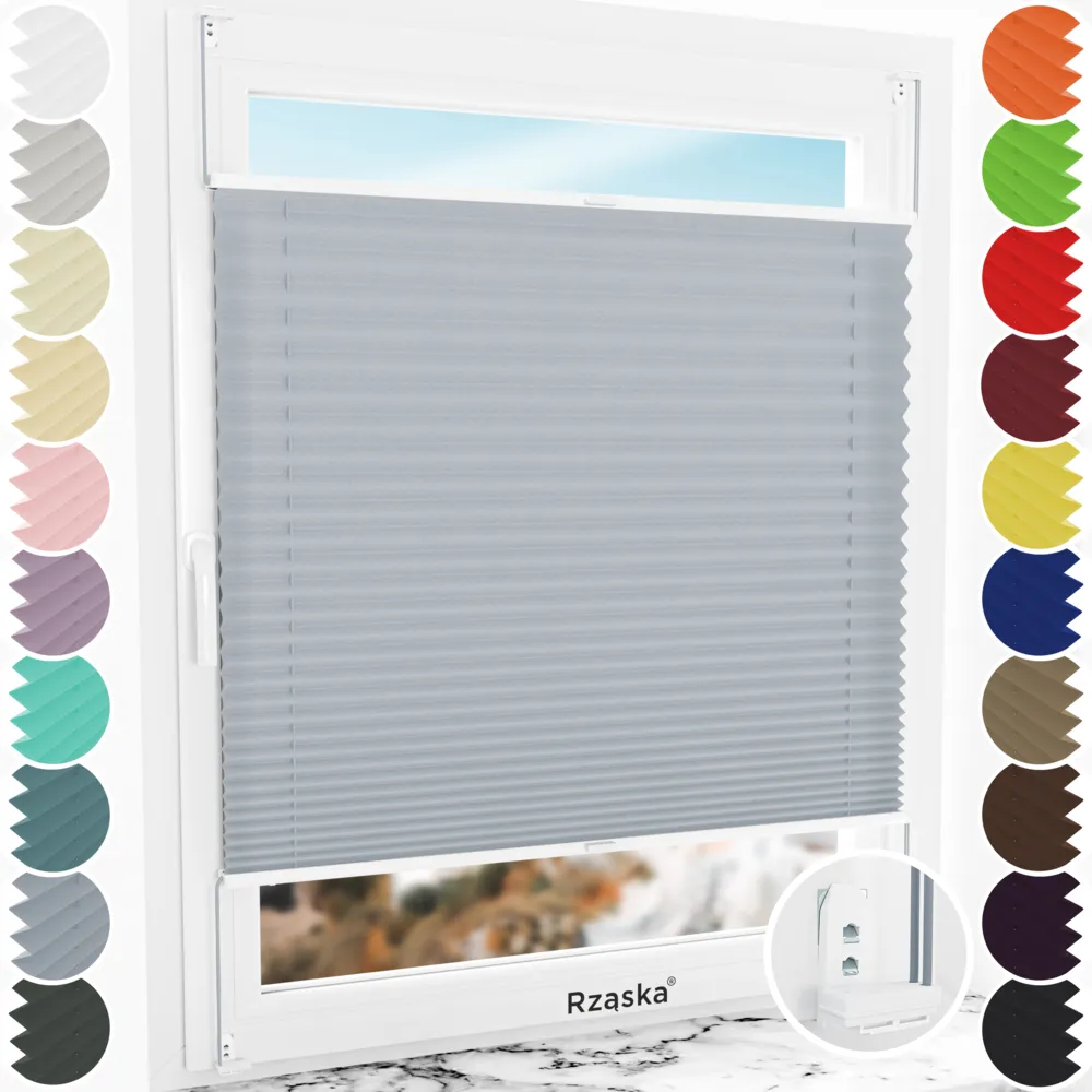 Rząska® bezinwazyjne plisy okienne na wymiar • mocowania Risinfix Double 2w1 • kolekcja Premium: kolor tkaniny Srebrna Sonata, szarego • kolor profili biały