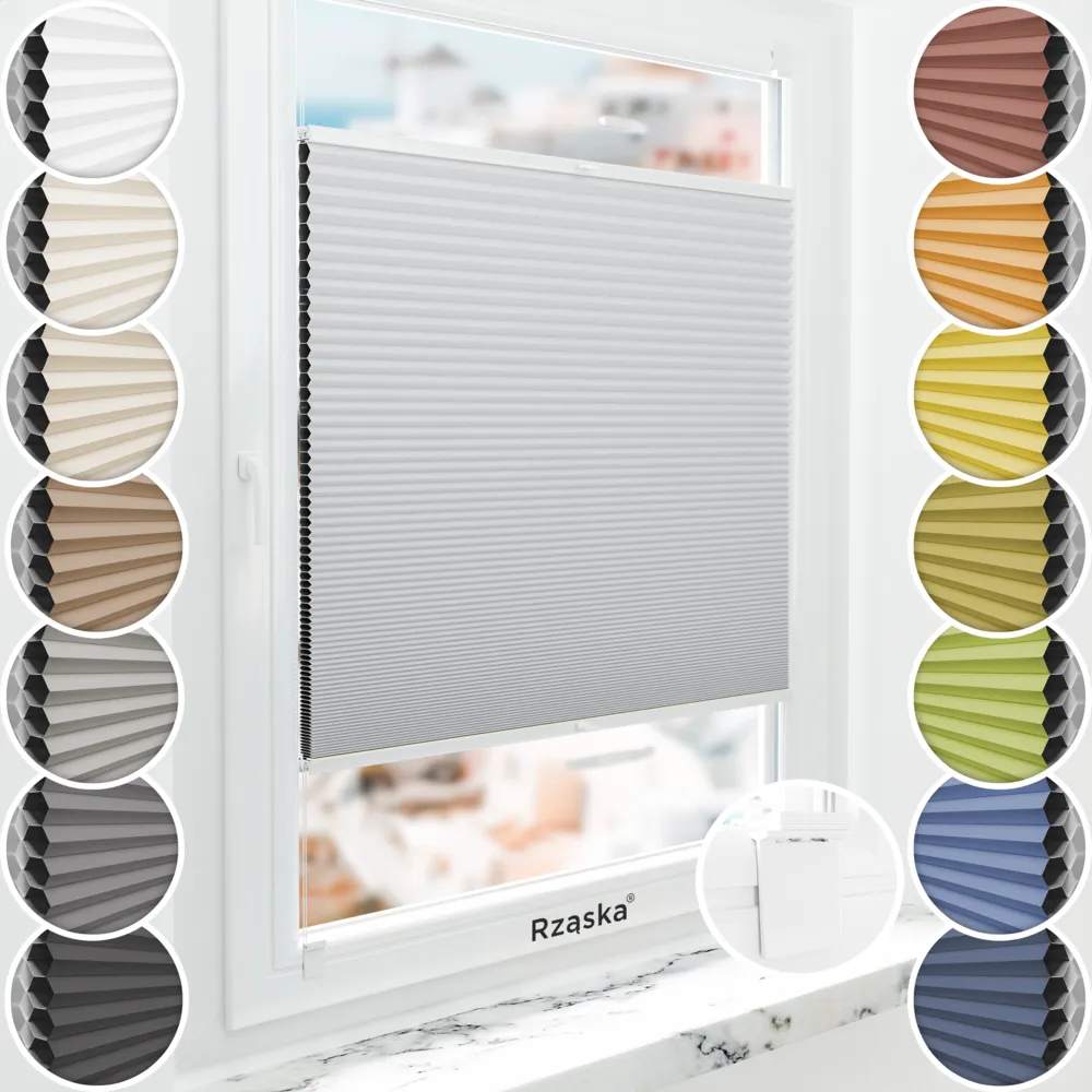 • Tkanina plisowana: tkanina posiada certyfikat Oeko-Tex, jest wykonana z podwójnej struktury komórkowej, wzbogacona o innowacyjną srebrną powłoką termoizolacyjną wewnątrz komórek. Tkanina całkowicie blokuje dostęp światła, skutecznie chroniąc przed nasłonecznieniem. Dzięki ukrytym sznurkom napinającym fałdy układają się idealnie równo, bez widocznych otworów. Zastosowana ochrona UV zapobiega blaknięciu. Nieprzeźroczysta, tkanina zapewnia ochronę UV przed blaknięciem, a kolory są w pełni autorsko opracowane i delikatnie barwione – z przodu kolorowe, a z tyłu białe.