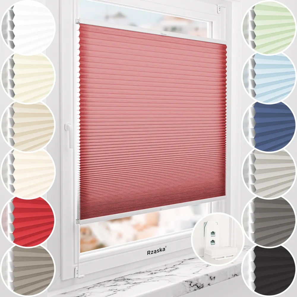 Tkanina plisowana: tkanina posiada certyfikat Oeko-Tex, jest wykonana z podwójnej struktury komórkowej i skutecznie filtruje światło słoneczne. Nie posiada srebrnej powłoki termoizolacyjnej wewnatrz komórek tak jak kolekcja Blackout Honeycomb (plaster miodu), delikatnie przepuszcza światło słoneczne. Dzięki ukrytym sznurkom napinającym fałdy układają się idealnie równo, bez widocznych otworów. Zastosowana ochrona UV zapobiega blaknięciu. Nieprzeźroczysta, tkanina zapewnia ochronę UV przed blaknięciem, a kolory są w pełni autorsko opracowane i delikatnie barwione – z przodu kolorowe, a z tyłu białe.