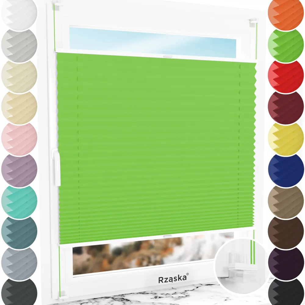 Rząska® bezinwazyjne plisy zaciemniające na wymiar • mocowania Risinfix do zaciskania • kolekcja Thermo: kolor tkaniny Liść radości, zielony • kolor profili biały