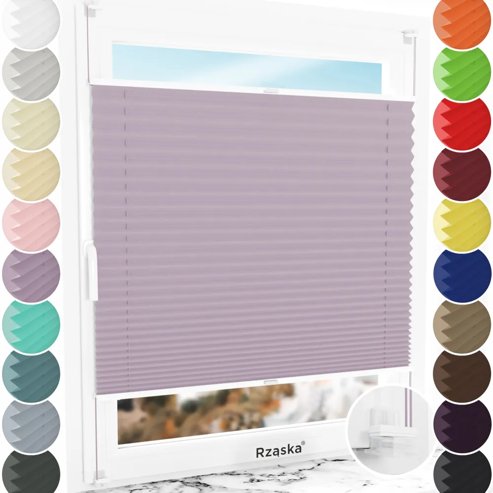 Rząska® bezinwazyjne plisy zaciemniające na wymiar • mocowania Risinfix do zaciskania • kolekcja Thermo: kolor tkaniny Pastelowe winogrono, flioletowy • kolor profili biały