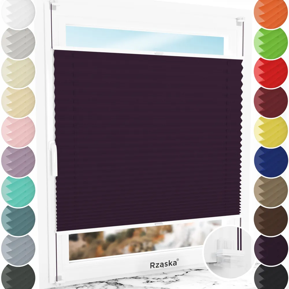 Rząska® bezinwazyjne plisy zaciemniające na wymiar • mocowania Risinfix do zaciskania • kolekcja Thermo: kolor tkaniny Flioletowy raj, flioletowy • kolor profili biały