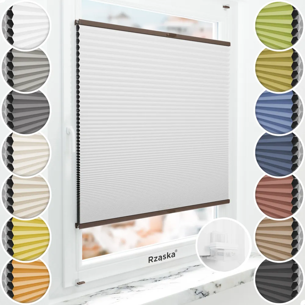 - Cechy rolety plisowanej Rząska® BLACKOUT plaster miodu: całkowite zaciemnienie pomieszczenia (bez widocznych otworów i sznurków napinających tkanine), ochrona przed ciepłem i zimnem (funkcja termoizolacyjna), izolacja dźwięku (ulepszona akustyka pomieszczenia), wysoki potencjał oszczędności energii; Płynna regulacja (góra/dół), podwójne sznurowanie (większa stabilność), specjalistyczne profile aluminiowe (bez wyginania/łamania), wstępnie złożona (brak potrzeby przewlekania sznurków rolety ani czasochłonnego montażu wielu pojedynczych części).