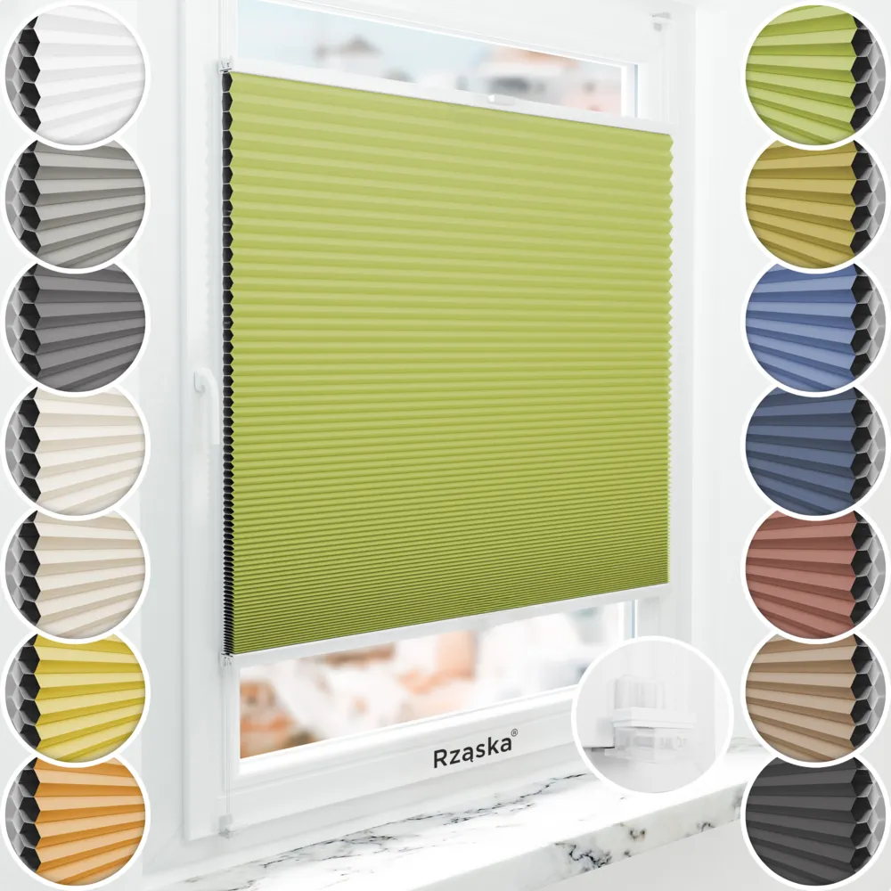 Rząska® bezinwazyjne rolety plisowane na wymiar • Blackout Honeycomb (Plaster Miodu): kolor tkaniny Zielona herbata, zielony • kolor profili biały