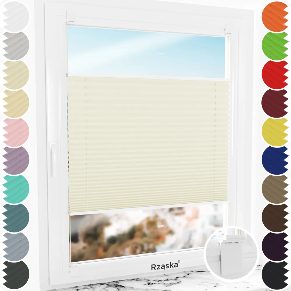 Rząska® bezinwazyjne rolety plisowane na wymiar • mocowania Risnifix do klejenia 2w1 • kolekcja Premium: kolor tkaniny Lody waniliowe, kremowy • kolor profili biały