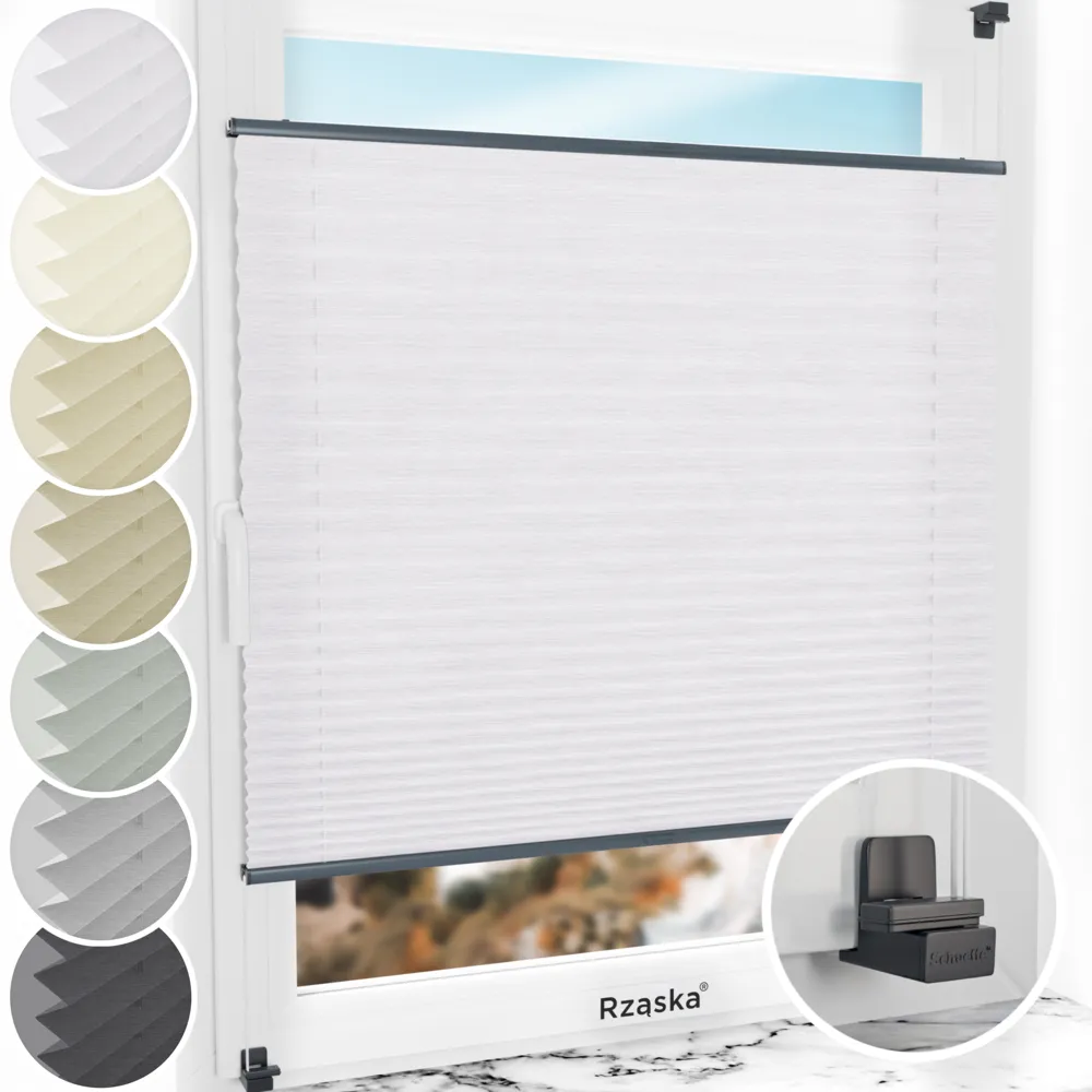 - Montaż: uchwyt do plisy Rząska® Risinfix do zaciskania: gwarantuje wytrzymałość i elastyczność. Praktycznie niewidoczny i pasujący do każdego koloru okna, mały i dobrze przemyślany (nieszkodliwy dla gumowych uszczelek i najlepiej zapobiegający przeciągom i syczeniu powietrza). Zapewnia łatwy i szybki montaż poniżej 3 minut bez użycia dodatkowych narzędzi. Uchwyt posiada solidny i antypoślizgowy chwyt, a dodatkowe podkładki samoprzylepne zapewniają stabilność.