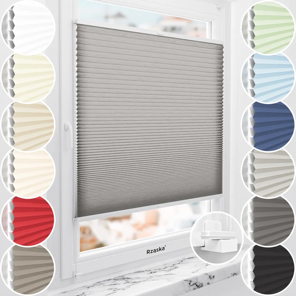 Montaż: Uchwyt do plisy Rząska® Risinfix do zaciskania: gwarantuje wytrzymałość i elastyczność. Praktycznie niewidoczny i pasujący do każdego koloru okna, mały i dobrze przemyślany (nieszkodliwy dla gumowych uszczelek i najlepiej zapobiegający przeciągom i syczeniu powietrza). Zapewnia łatwy i szybki montaż poniżej 3 minut bez użycia dodatkowych narzędzi. Uchwyt posiada solidny i antypoślizgowy chwyt, a dodatkowe podkładki samoprzylepne zapewniają stabilność.