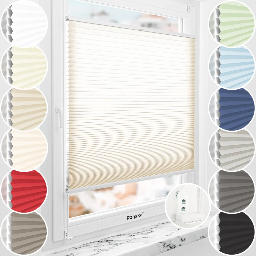 Tkanina plisowana: tkanina posiada certyfikat Oeko-Tex, jest wykonana z podwójnej struktury komórkowej i skutecznie filtruje światło słoneczne. Nie posiada srebrnej powłoki termoizolacyjnej wewnatrz komórek tak jak kolekcja Blackout Honeycomb (plaster miodu), delikatnie przepuszcza światło słoneczne. Dzięki ukrytym sznurkom napinającym fałdy układają się idealnie równo, bez widocznych otworów. Zastosowana ochrona UV zapobiega blaknięciu. Nieprzeźroczysta, tkanina zapewnia ochronę UV przed blaknięciem, a kolory są w pełni autorsko opracowane i delikatnie barwione – z przodu kolorowe, a z tyłu białe.