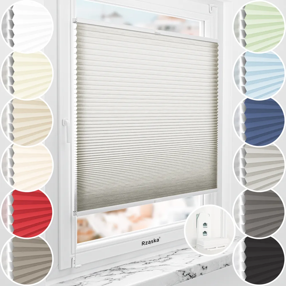 • Tkanina plisowana: tkanina posiada certyfikat Oeko-Tex, jest wykonana z podwójnej struktury komórkowej i skutecznie filtruje światło słoneczne. Nie posiada srebrnej powłoki termoizolacyjnej wewnatrz komórek tak jak kolekcja Blackout Honeycomb (plaster miodu), delikatnie przepuszcza światło słoneczne. Dzięki ukrytym sznurkom napinającym fałdy układają się idealnie równo, bez widocznych otworów. Zastosowana ochrona UV zapobiega blaknięciu. Nieprzeźroczysta, tkanina zapewnia ochronę UV przed blaknięciem, a kolory są w pełni autorsko opracowane i delikatnie barwione – z przodu kolorowe, a z tyłu białe.
