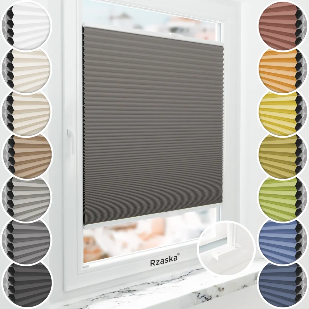 Rząska® inwazyjne plisy, rolety termoizolacyjne • Blackout Honeycomb (Plaster Miodu): kolor tkaniny Szwajcarska czekolada, szarobrązowy • kolor profili biały