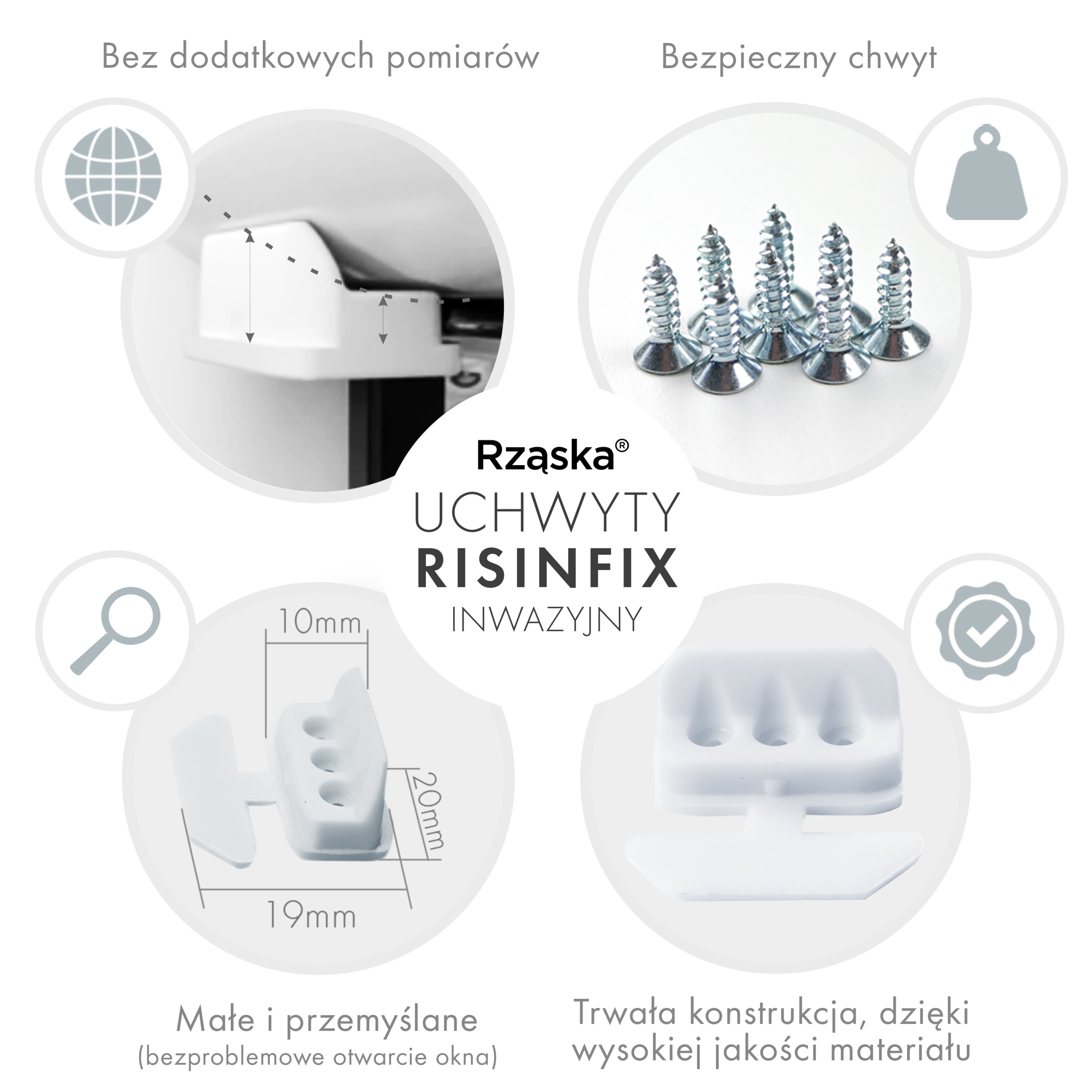 - Montaż: uchwyty do rolet plisowanych Rząska® Risinfix do przykręcania / wiercenia gwarantują czysty, estetyczny wygląd oraz szybki i łatwy montaż, bez użycia specjalnych narzędzi. Oczywiście w zestawie znajduje się nasza instrukcja montażu, wraz z linkiem do naszego filmu o montażu rolet plisowanych! W razie jakichkolwiek pytań prosimy o kontakt z naszym działem obsługi klienta.
