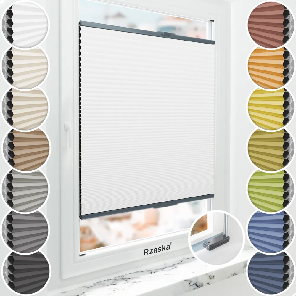 - Cechy rolety plisowanej Rząska® BLACKOUT plaster miodu: całkowite zaciemnienie pomieszczenia (bez widocznych otworów i sznurków napinających tkanine), ochrona przed ciepłem i zimnem (funkcja termoizolacyjna), izolacja dźwięku (ulepszona akustyka pomieszczenia), wysoki potencjał oszczędności energii; Płynna regulacja (góra/dół), podwójne sznurowanie (większa stabilność), specjalistyczne profile aluminiowe (bez wyginania/łamania), wstępnie złożona (brak potrzeby przewlekania sznurków rolety ani czasochłonnego montażu wielu pojedynczych części).