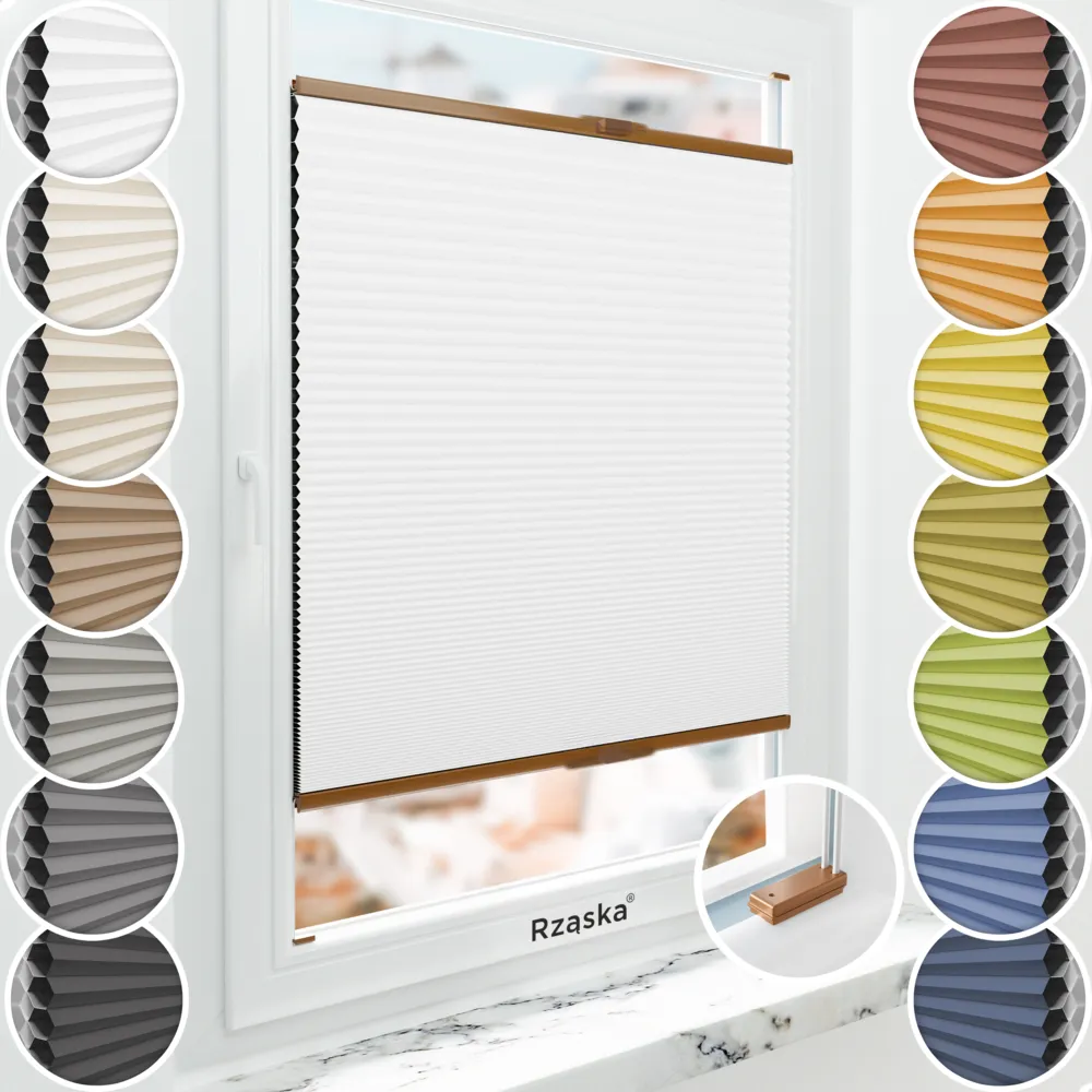 - Cechy rolety plisowanej Rząska® BLACKOUT plaster miodu: całkowite zaciemnienie pomieszczenia (bez widocznych otworów i sznurków napinających tkanine), ochrona przed ciepłem i zimnem (funkcja termoizolacyjna), izolacja dźwięku (ulepszona akustyka pomieszczenia), wysoki potencjał oszczędności energii; Płynna regulacja (góra/dół), podwójne sznurowanie (większa stabilność), specjalistyczne profile aluminiowe (bez wyginania/łamania), wstępnie złożona (brak potrzeby przewlekania sznurków rolety ani czasochłonnego montażu wielu pojedynczych części).