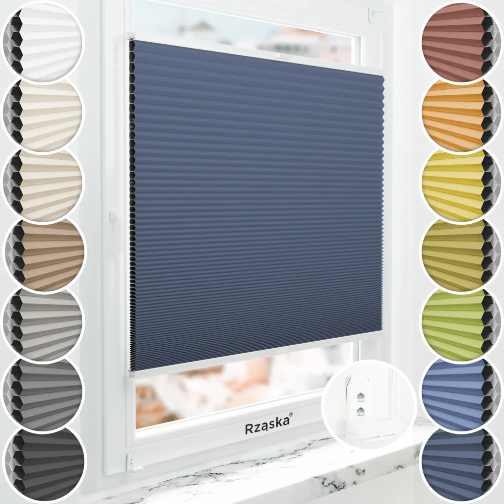 - Cechy rolety plisowanej Rząska® BLACKOUT plaster miodu: całkowite zaciemnienie pomieszczenia (bez widocznych otworów i sznurków napinających tkanine), ochrona przed ciepłem i zimnem (funkcja termoizolacyjna), izolacja dźwięku (ulepszona akustyka pomieszczenia), wysoki potencjał oszczędności energii; Płynna regulacja (góra/dół), podwójne sznurowanie (większa stabilność), specjalistyczne profile aluminiowe (bez wyginania/łamania), wstępnie złożona (brak potrzeby przewlekania sznurków rolety ani czasochłonnego montażu wielu pojedynczych części).