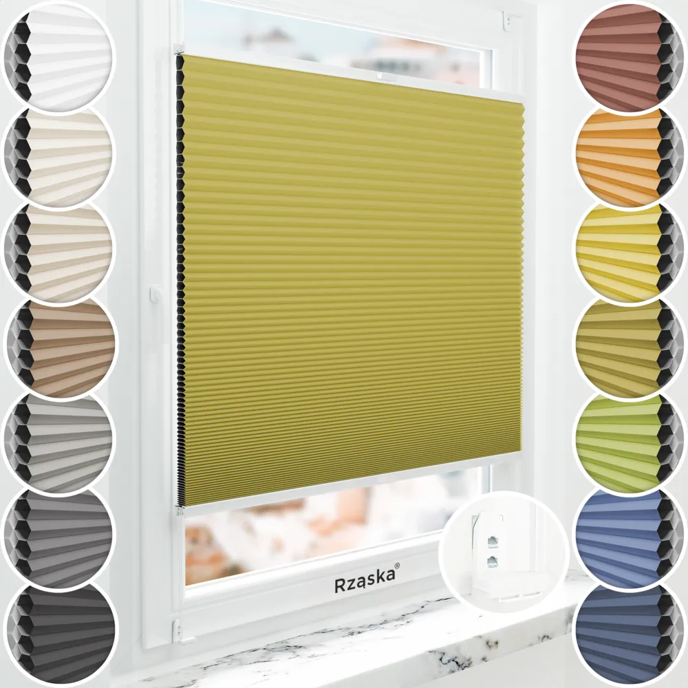 Rząska® inwazyjne plisy zaciemniające Rząska® • Blackout Honeycomb (Plaster Miodu): kolor tkaniny Gałązka oliwna, żółty • kolor profili biały