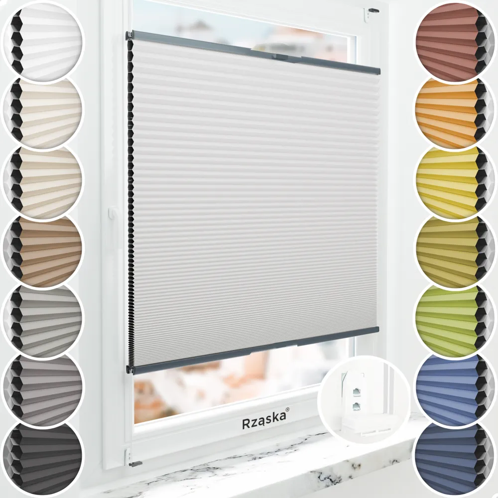 - Cechy rolety plisowanej Rząska® BLACKOUT plaster miodu: całkowite zaciemnienie pomieszczenia (bez widocznych otworów i sznurków napinających tkanine), ochrona przed ciepłem i zimnem (funkcja termoizolacyjna), izolacja dźwięku (ulepszona akustyka pomieszczenia), wysoki potencjał oszczędności energii; Płynna regulacja (góra/dół), podwójne sznurowanie (większa stabilność), specjalistyczne profile aluminiowe (bez wyginania/łamania), wstępnie złożona (brak potrzeby przewlekania sznurków rolety ani czasochłonnego montażu wielu pojedynczych części).