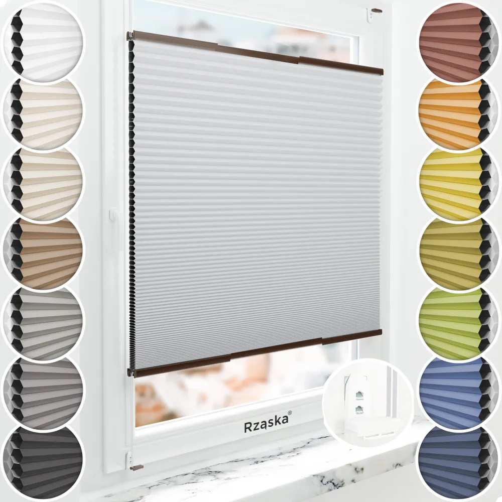 - Cechy rolety plisowanej Rząska® BLACKOUT plaster miodu: całkowite zaciemnienie pomieszczenia (bez widocznych otworów i sznurków napinających tkanine), ochrona przed ciepłem i zimnem (funkcja termoizolacyjna), izolacja dźwięku (ulepszona akustyka pomieszczenia), wysoki potencjał oszczędności energii; Płynna regulacja (góra/dół), podwójne sznurowanie (większa stabilność), specjalistyczne profile aluminiowe (bez wyginania/łamania), wstępnie złożona (brak potrzeby przewlekania sznurków rolety ani czasochłonnego montażu wielu pojedynczych części).