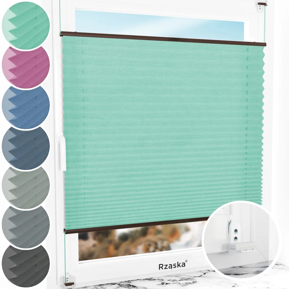 Rząska® inwazyjne rolety plisowane na wymiar • mocowania Risinfix Double 2w1 • kolekcja Melange: kolor tkaniny Miętowe lody, zielony • kolor profili brązowy