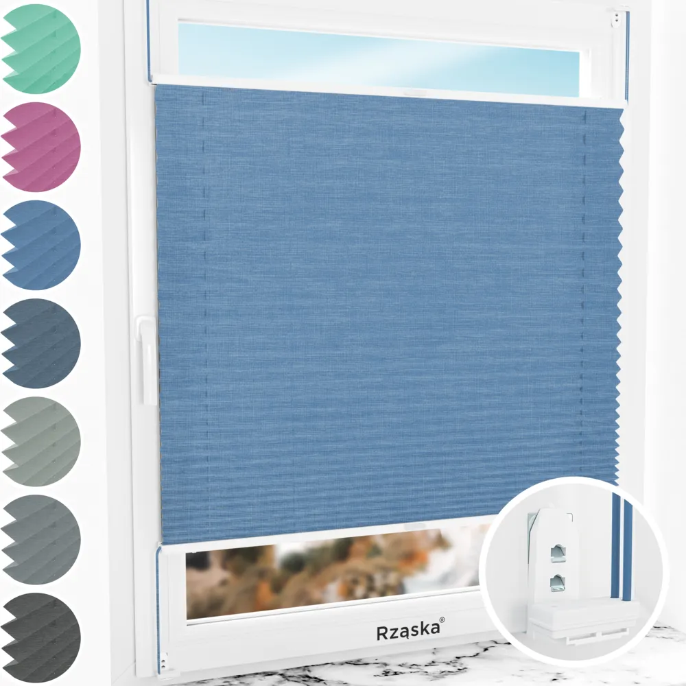 Rząska® inwazyjne rolety plisowane na wymiar • mocowania Risinfix Double 2w1 • kolekcja Melange: kolor tkaniny Głębokie morze, niebieski • kolor profili biały