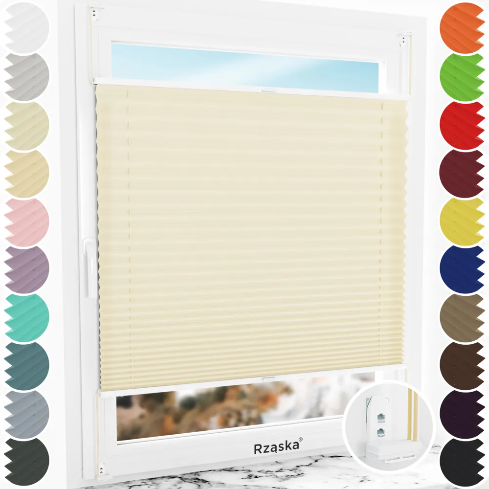 Rząska® inwazyjne rolety plisowane na wymiar • mocowania Risinfix Double 2w1 • kolekcja Premium: kolor tkaniny Piasek Sahary, beżowy • kolor profili biały