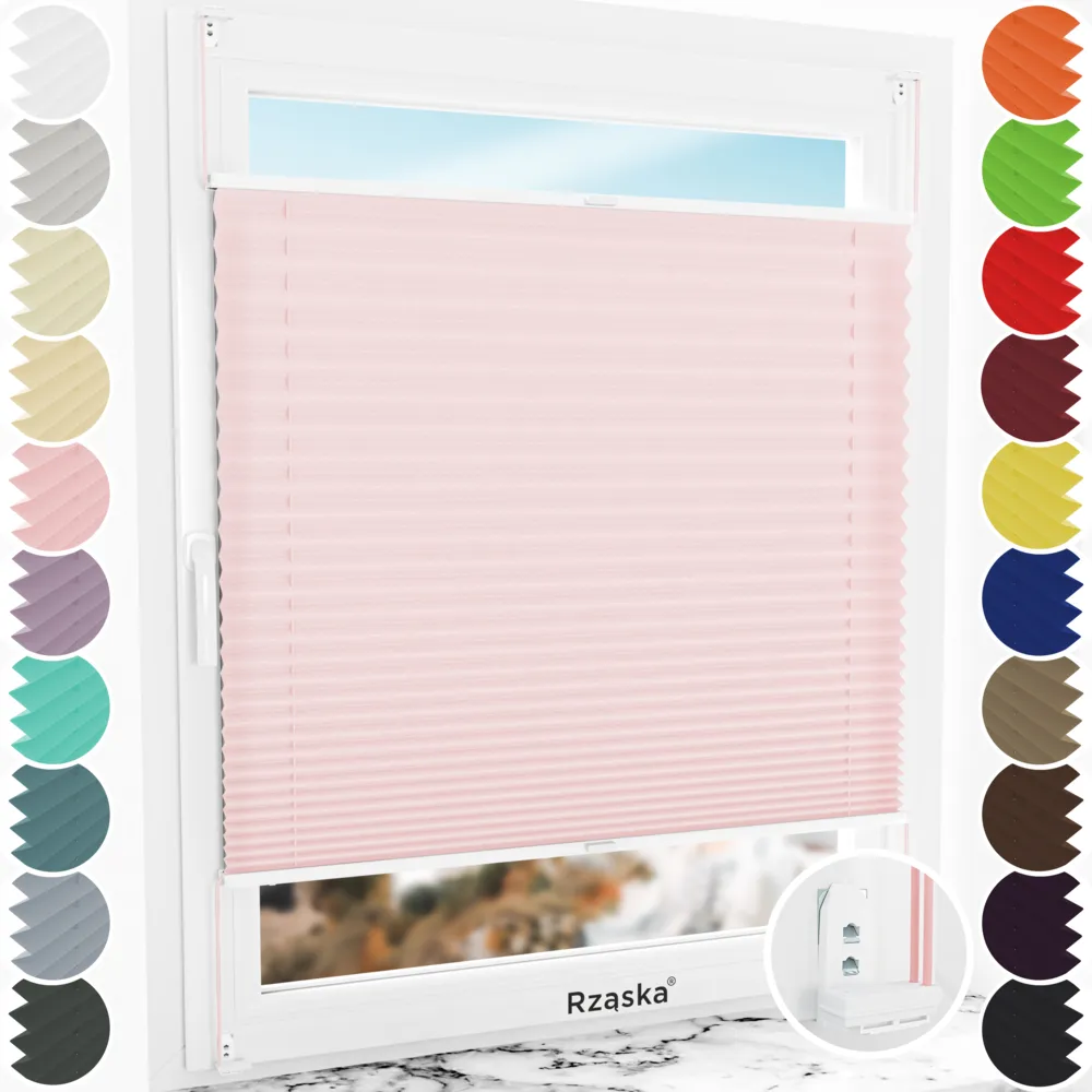 Rząska® inwazyjne rolety plisowane na wymiar • mocowania Risinfix Double 2w1 • kolekcja Premium: kolor tkaniny Pudrowy róż, różowy • kolor profili biały