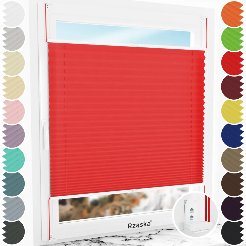 Rząska® inwazyjne rolety plisowane na wymiar • mocowania Risinfix Double 2w1 • kolekcja Premium: kolor tkaniny Usta Geishy, czerwony • kolor profili biały