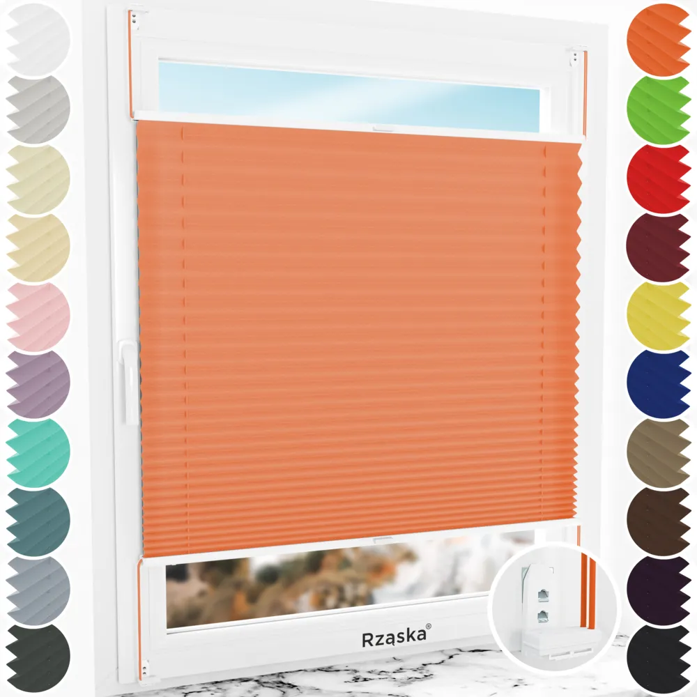 Rząska® inwazyjne rolety plisowane na wymiar • mocowania Risinfix Double 2w1 • kolekcja Premium: kolor tkaniny Zachód słońca, pomarańczowy • kolor profili biały