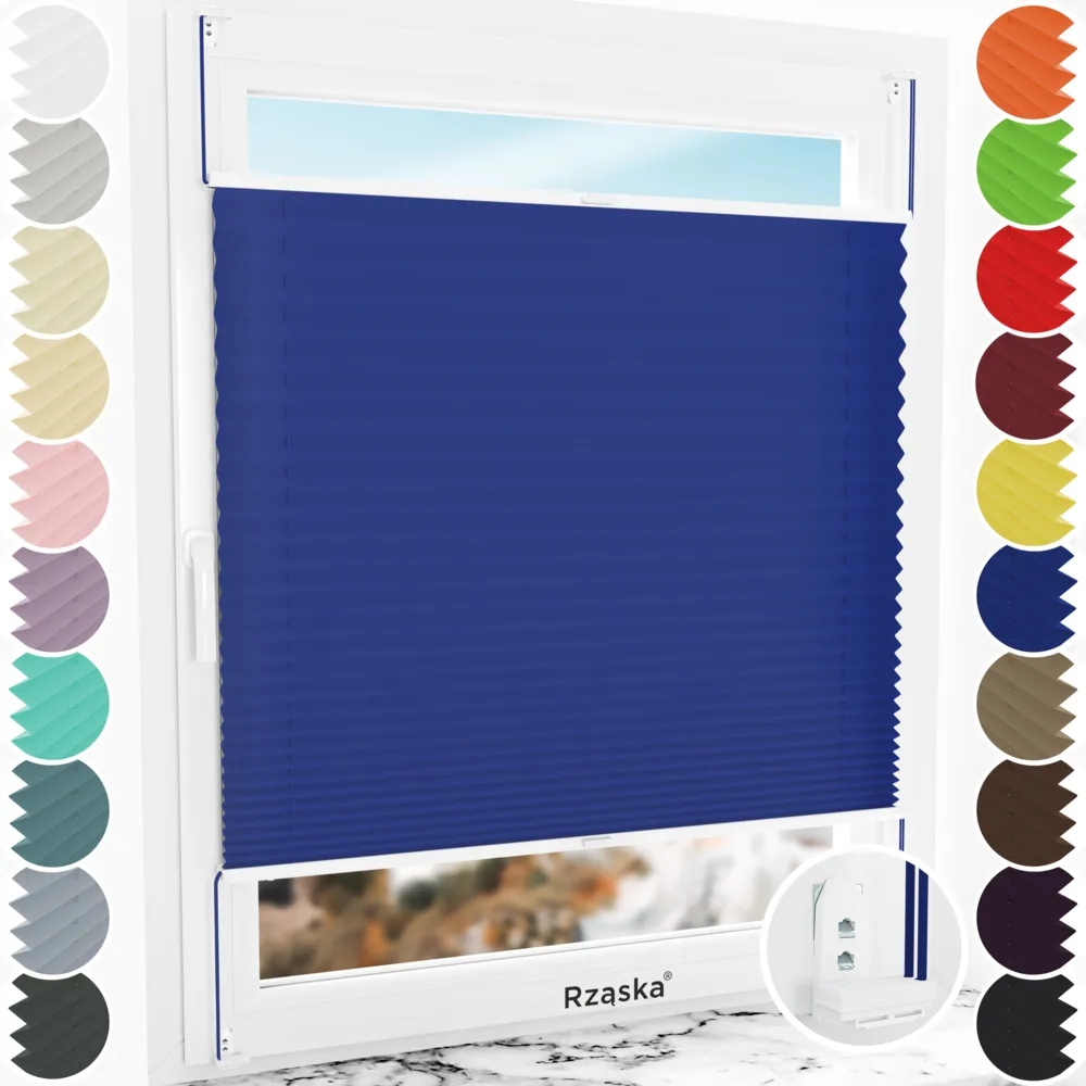 Rząska® inwazyjne rolety plisowane na wymiar • mocowania Risinfix Double 2w1 • kolekcja Premium: kolor tkaniny Błękitna laguna, niebieski • kolor profili biały