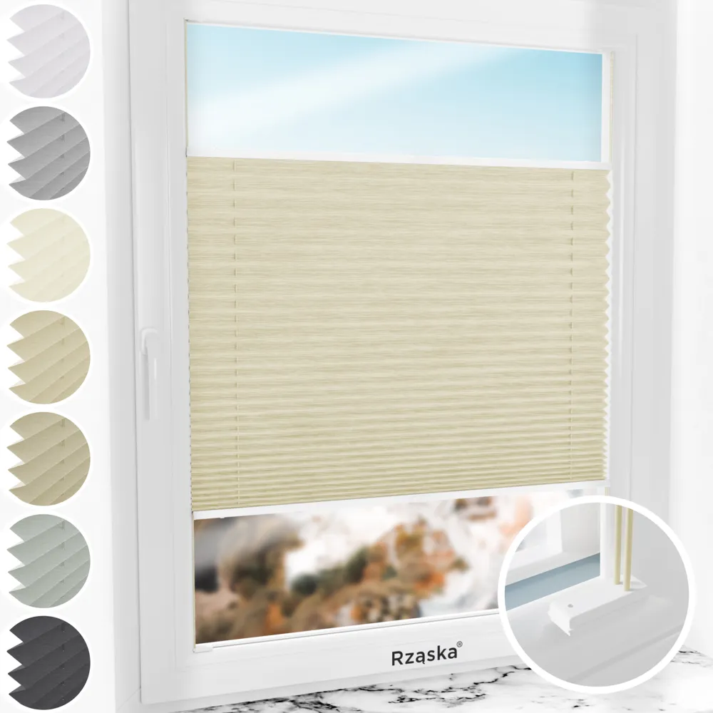 Rząska® inwazyjne rolety plisowane na wymiar • mocowania Risnifix inwazyjne • kolekcja Dolomite: kolor tkaniny Mokry piasek, beżowy • kolor profili biały