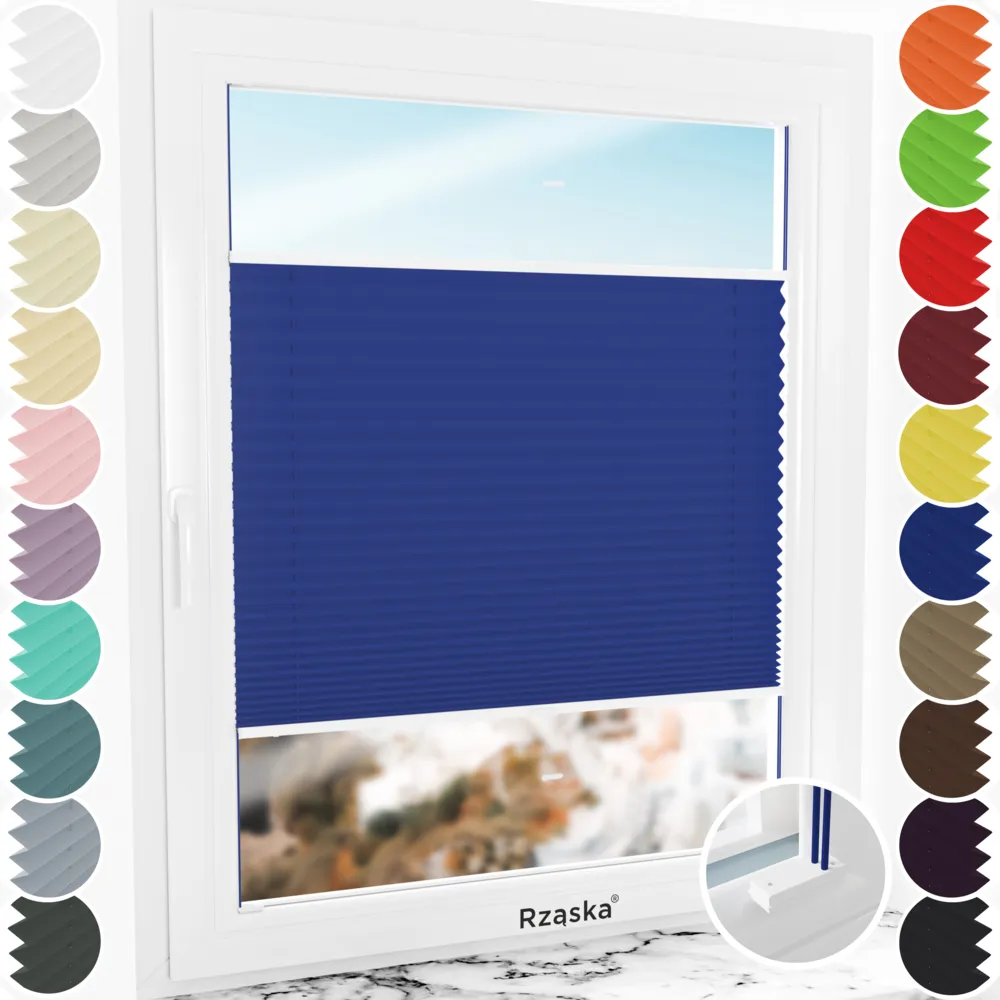 • Cechy inwazyjnej rolety plisowanej Rząska®: Płynna regulacja (góra/dół), podwójne sznurowanie (większa stabilność), profile aluminiowe (bez wyginania/łamania), wstępnie złożona (brak potrzeby przewlekania sznurków rolety ani czasochłonnego montażu wielu pojedynczych części).