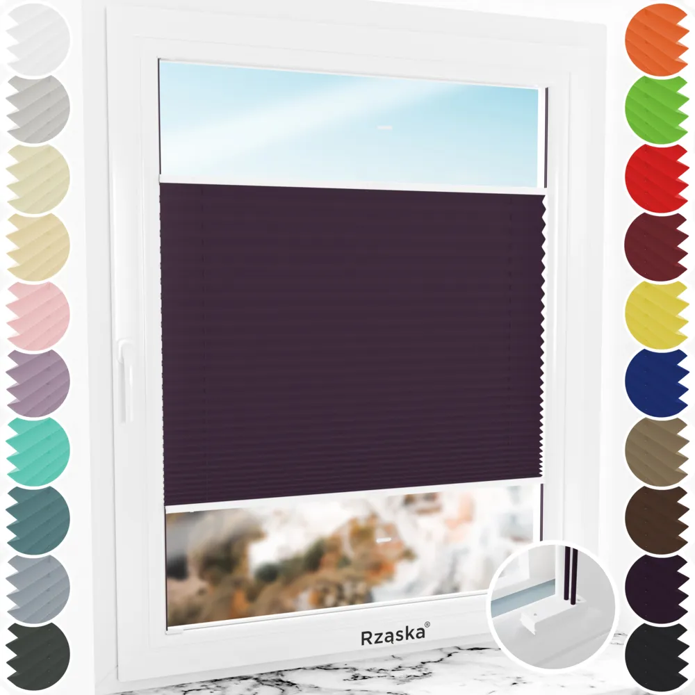 Inwazyjne rolety plisowane zaciemniajace Rząska® na wymiar, uchwyty Risinfix do przykręcania, kolekcja Thermo w kolorze Flioletowy raj, flioletowym z profilem białym.
