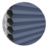 - Minimalny odstęp do szyby dzięki asymetrycznemu kształtowi komórek tkaniny (prawie całkowicie płaski tył tkaniny przy pełnym zasłonięciu szyby) oraz doskonałe wykorzystanie przestrzeni zapewnia bezpieczne i odczuwalne odprowadzanie ciepła kumulującego się przy szybie okiennej (bez ryzyka pęknięcia szkła).