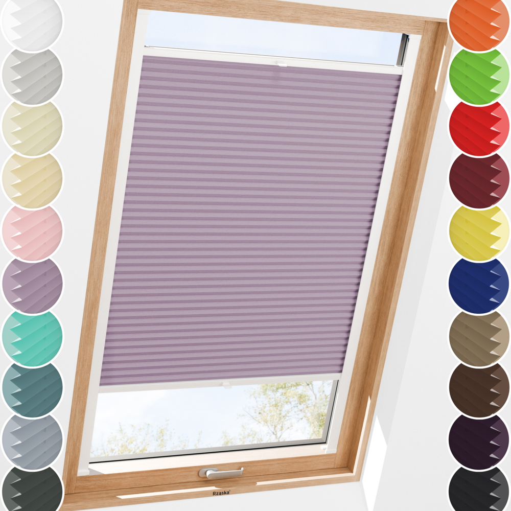 Rząska® roleta plisowana do okien dachowych na wymiar z prowadnicami • mocowania Risinfix inwazyjne do okien dachowych • kolekcja Premium: w kolorze Śliwkowy urok, fioletowy • kolor profili biały