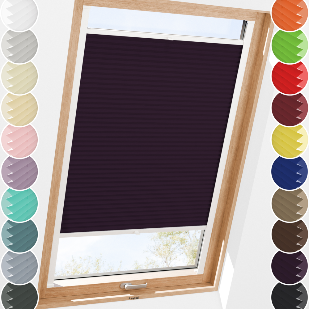 Rząska® roleta plisowana do okien dachowych na wymiar z prowadnicami • mocowania Risinfix inwazyjne do okien dachowych • kolekcja Premium: w kolorze Muza północy, fioletowy • kolor profili biały